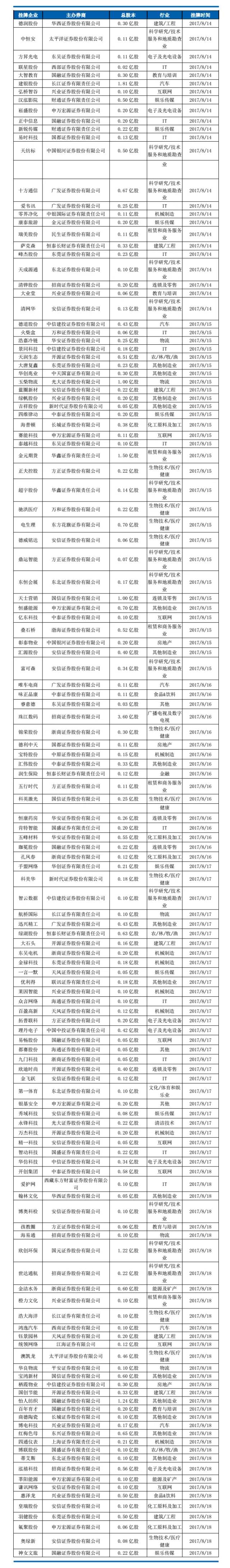 截止本周五下午,本周共有5家企业上市,总融资金额31.35亿元人民币。本周融资金额较大的上市事件为:2017年8月16日,秦皇岛港股份有限公司在上海证券交易所上市,发行股数5.58亿股,每股发行价格为2.34元,共募集资金金额13.06亿人民币。秦皇岛港股份有限公司成立于2008年3月31日,是由秦皇岛港务集团有限公司联合其他9家发起人共同出资成立的大型股份制企业,主要承担港口货物装卸、仓储经营等业务。本次募集资金主要用于秦港股份主营业务以及新的业绩增长点,以期不断提高港口的货物吞吐能力和营运效率,提升港口物流服务水平和核心竞争力。